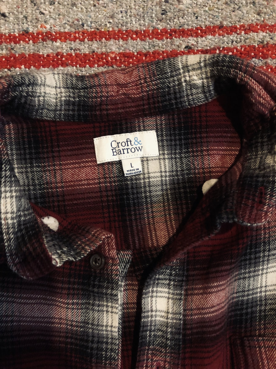 Marked a L by Croft & Barrow but has been worn / washed over time. Please pay special attention to measurements as we can't return these.
